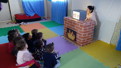 Contação de história - Os três porquinhos utilizando o teatro de sombras.